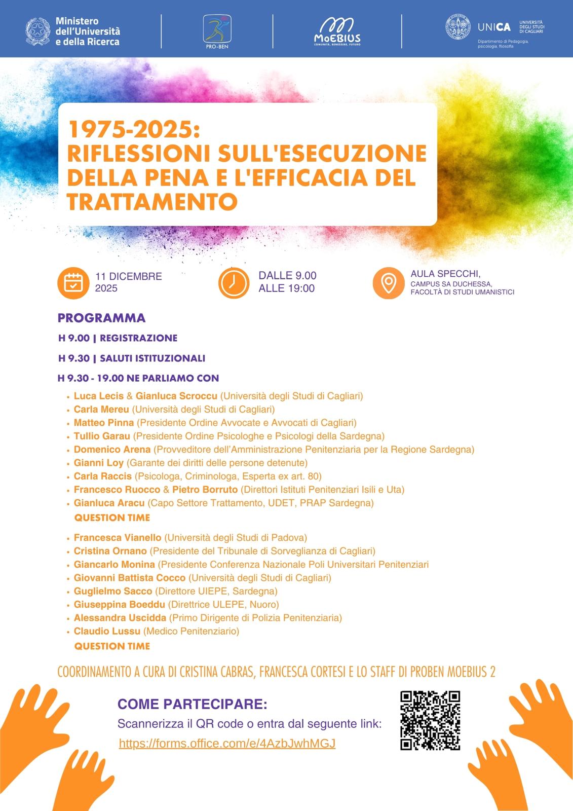 1975-2025: RIFLESSIONI SULL'ESECUZIONE DELLA PENA E L'EFFICACIA DEL TRATTAMENTO Giovedì 11 Dicembre 2025 dalle ore 09:00 alle ore 19:00 AULA SPECCHI Campus Sa Duchessa Facoltà di Studi Umanistici